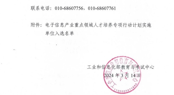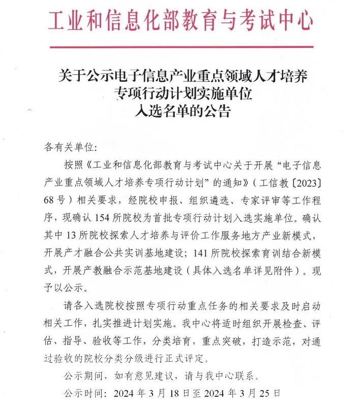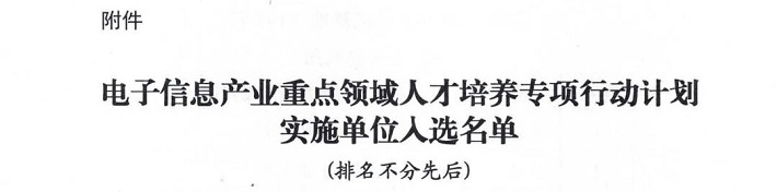喜讯:我校成功入选工业和信息化部“电子信息产业重点领域人才培养专项行动计划”实施单位