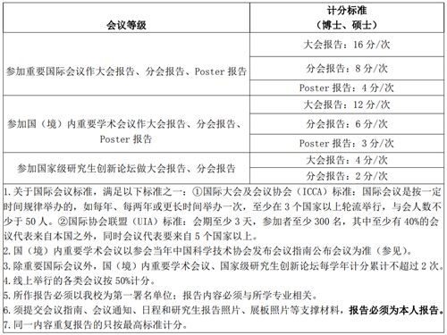 8.参加重要学术年会或其他重要会议计分标准 |